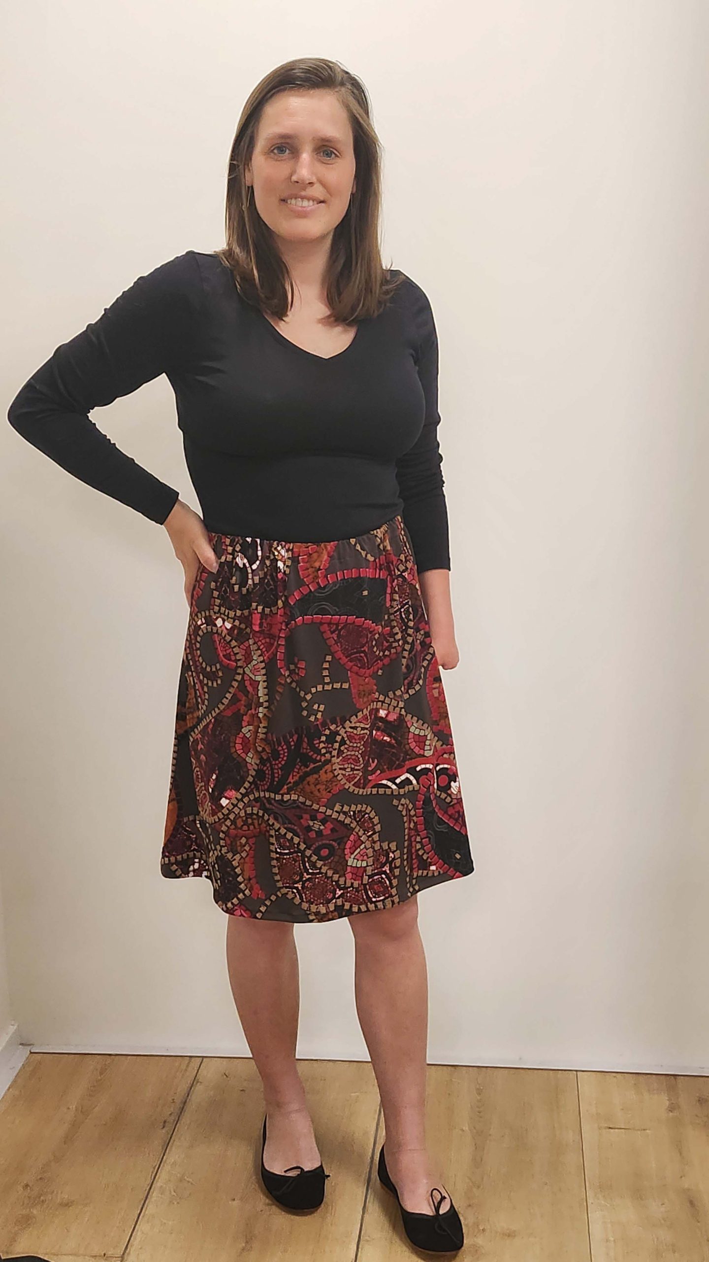 Aniek is een A-lijn rokje met een aangeknipte elastieken band. Het patroon is na aanschaf te downloaden. U ontvangt dan een werkbeschrijving, een pdf-bestand voor het patroon in A4, een bestand die u kunt laten afdrukken bij een copyshop en een bestand geschikt voor de beamer.